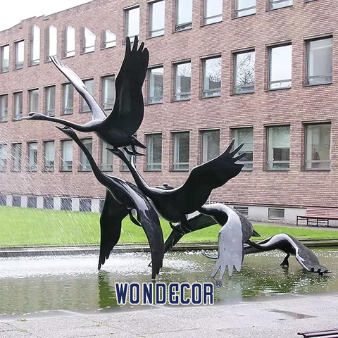 עיצוב חם למכירה באיכות גבוהה מתכת מלאכת עיצוב מזרקה חיצונית עם בריכת חיות חיצונית עם פסלים ציפור חיה רכוב