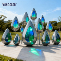 Wonders Large-scale Outdoor Plaza Metal Light and Shadow Art Installation: Water Drop Stainless Steel Sculpture