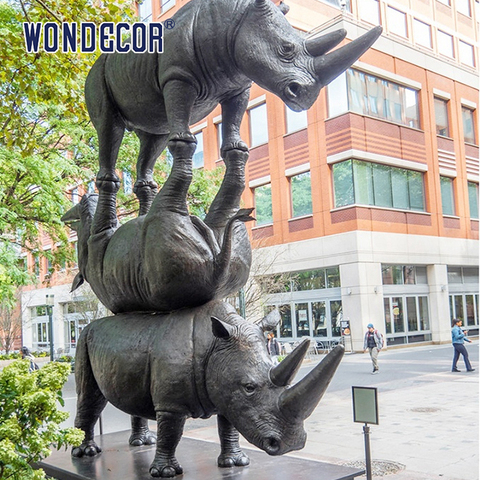 Wondecor Modern açık metal döküm yaşam boyutu bronz rhinoceros heykeli