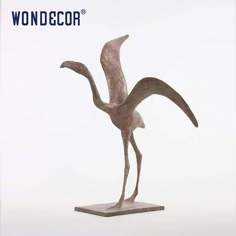 Wondecor özelleştirilmiş soyut açık bahçe metal döküm yaşam boyutu bronz stork heykeli